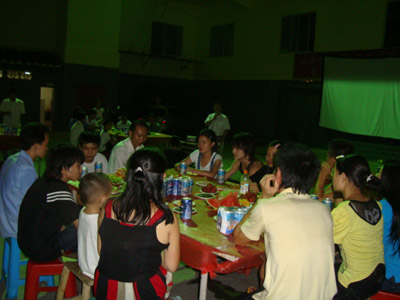 皓月當(dāng)空,美景無限,對酒當(dāng)歌,情誼相伴。這場宴會在黃總的安排下,不僅是味覺盛宴,更請來了電影放映公司,滿足了大家的聽覺和視覺盛宴。