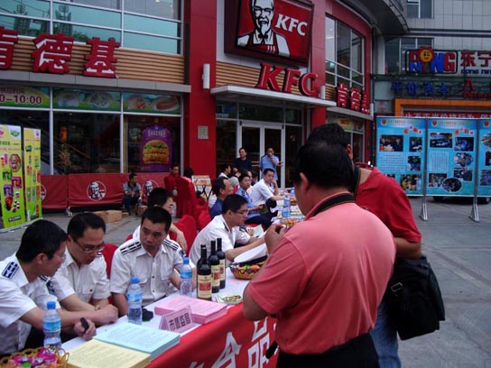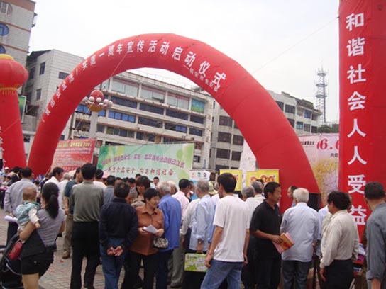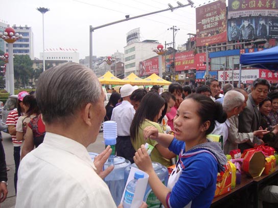 我公司參加<<食品安全法>>實(shí)施一周年宣傳活動(dòng)!活動(dòng)期間我公司免費(fèi)發(fā)送飲用水贈(zèng)飲卷、茶香蜜餞等產(chǎn)品。受到廣大群眾的認(rèn)可!