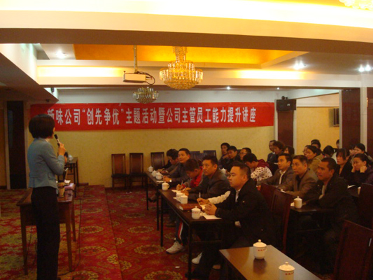 為進(jìn)一步推進(jìn)“創(chuàng)先爭(zhēng)優(yōu)”活動(dòng)深入開(kāi)展,11月27日,在市非公經(jīng)濟(jì)創(chuàng)先爭(zhēng)優(yōu)指導(dǎo)組的指導(dǎo)下,福建新味食品有限公司在福安市金源大酒店五樓舉行“創(chuàng)先爭(zhēng)優(yōu)”主題活動(dòng)暨公司主管員工能力提升講座。此次講座以“組織創(chuàng)先進(jìn),黨員爭(zhēng)優(yōu)秀,企業(yè)有發(fā)展,員工得實(shí)惠”為指導(dǎo),旨在通過(guò)對(duì)主管員工的培訓(xùn),增加其精神食糧,拓展其見(jiàn)識(shí)面,為提升員工創(chuàng)造能力打下堅(jiān)實(shí)基礎(chǔ)。講座特邀深圳新高度企業(yè)咨詢(xún)有限公司張慧女士主講。講座分為企業(yè)唯一不變的就是改變、企業(yè)創(chuàng)造最佳成果的兩大思維、創(chuàng)造最佳成果的三大能力三個(gè)專(zhuān)題,深度詮釋了企業(yè)創(chuàng)新的重要意義及創(chuàng)新思維的培養(yǎng)?,F(xiàn)場(chǎng)氣氛活躍,通過(guò)理論講解、現(xiàn)場(chǎng)討論等多種形式,極大地調(diào)動(dòng)了參會(huì)人員的積極性,公司員工紛紛表態(tài)要將“創(chuàng)新是企業(yè)的生命力”的理念貫穿于工作始終,講座收效良好。共有39名該公司主管員工參加了此次講座。