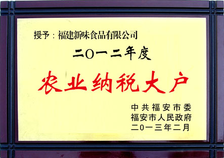 熱烈慶祝我司獲得2012“農業(yè)納稅大戶”榮譽稱號